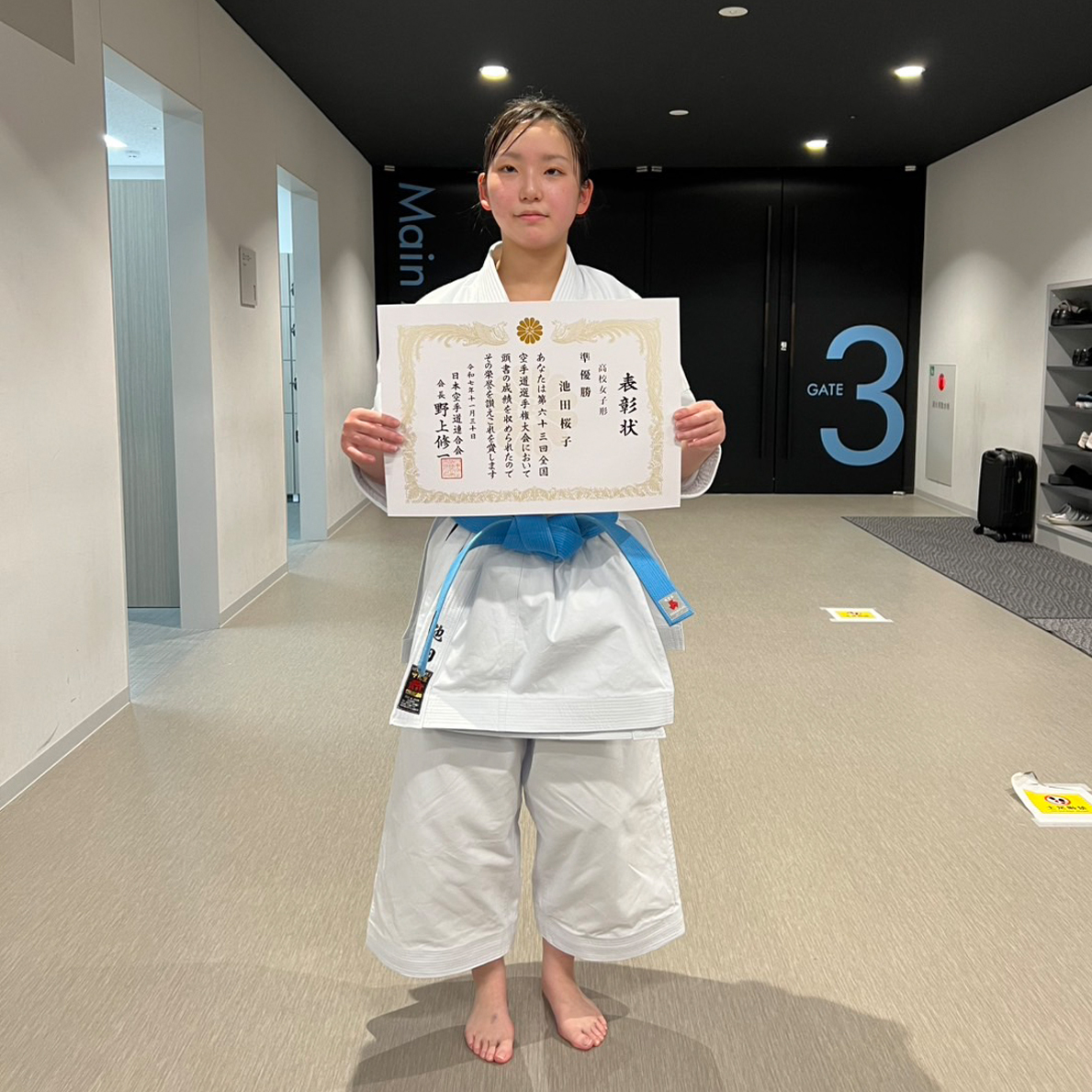 令和7年11月30日、滋賀ダイハツアリーナで日本空手道連合会 第63回全国空手道選手権大会が開催され、同心舘本部道場より3名の選手が出場、池田桜子さんが高校女子の部で見事準優勝に輝きました‼